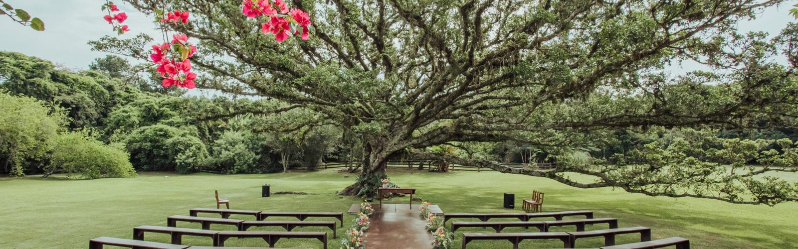 Hoje, o espaço oferece salão de festas, cozinha industrial, banheiros, toldos e acessos planejados, tudo integrado à paisagem natural e à arquitetura original da casa, construída com materiais da região como madeira, pedra e tijolos antigos. As intervenções sempre passam por avaliação de impacto ambiental, reforçando o compromisso com a sustentabilidade – que também se reflete em ações como separação e destinação correta de resíduos, compostagem, coleta de água da chuva e cultivo de pomar de frutas orgânicas. Para garantir conectividade durante as celebrações, o espaço investiu ainda em internet via satélite, atendendo a demandas de eventos híbridos e tecnológicos.